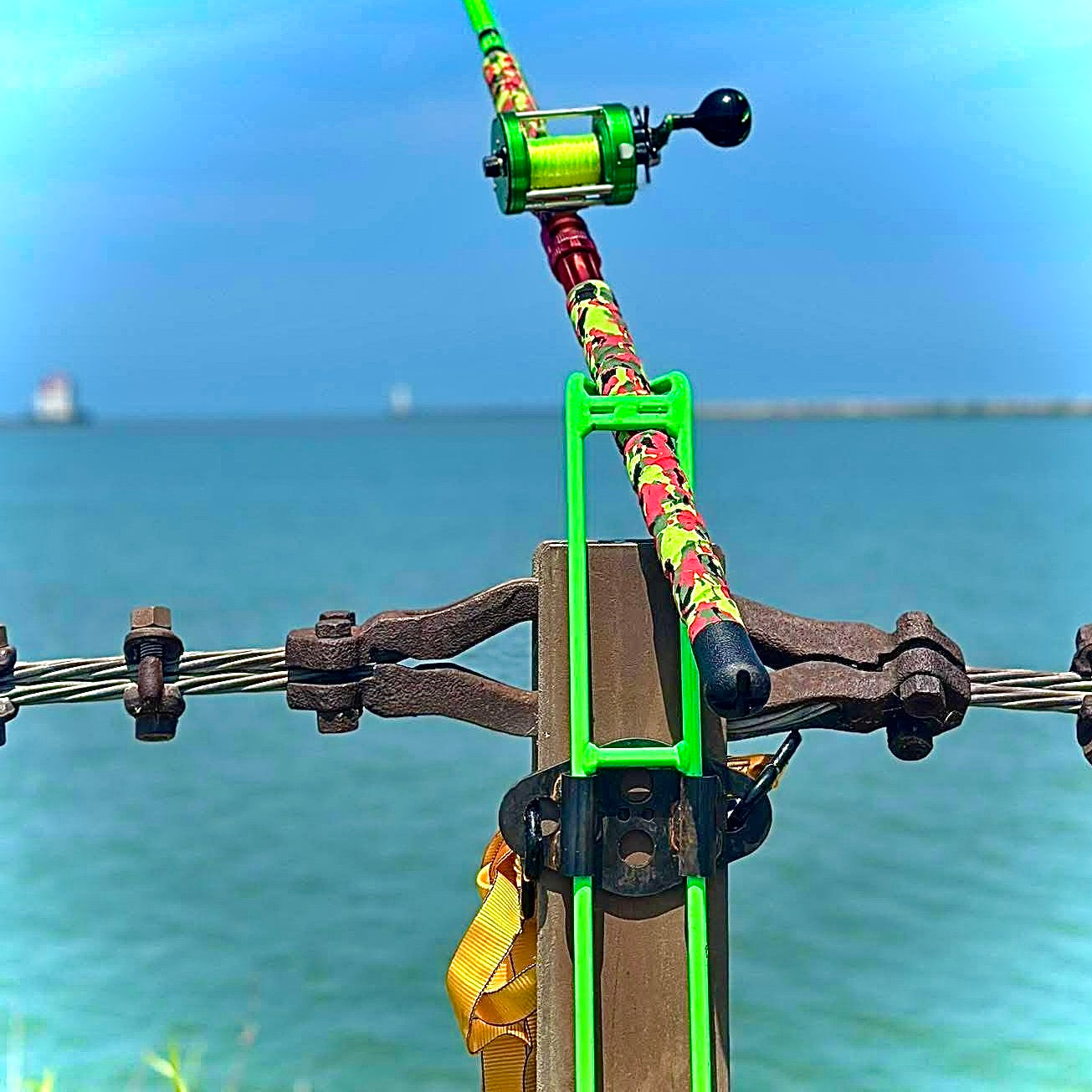 This is the ultimate mount, for the ultimate bank fishing rod holder. With two screw holes in the middle, our bracket allows you to mount this to any dock or boat. The four horizontal and vertical holes, allows you to ratchet strap the bracket to any tree, boulder, laid down tree, fence post, bridge, or fence! This has turned the Takedown Rod Holders virtually to be able to be used in any situation you can put them in!!!